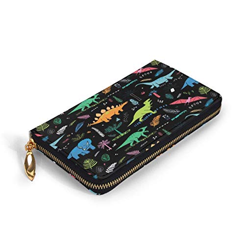 GYHJH Cartera Larga de Cuero con Hoja de Palma de Dinosaurio Divertida para Mujer, Cartera con Cremallera Alrededor, Tarjetero con Estampado Ligero, Monedero de Viaje de Gran Capacidad