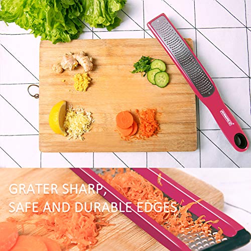Rallador Cocina, Raniaco Rallador de Limón Queso, Fino Zester Manual con Cuchilla de Acero Inoxidable y Mango de Silicona + Funda Protectora para Naranja Chocolate Cítricos Hortalizas Ajo (Rosa roja)