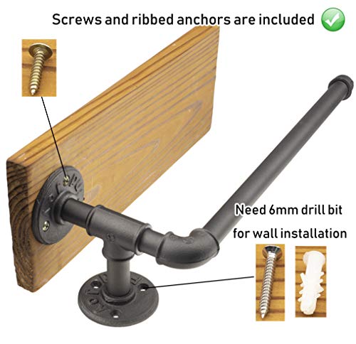 Y-nut Industrial Vintage Toalla de papel soporte para papel higiénico Muro de almacenamiento de madera de hierro de tubería Percha de rollo de tejido con estante para especias, Steampunk cocina
