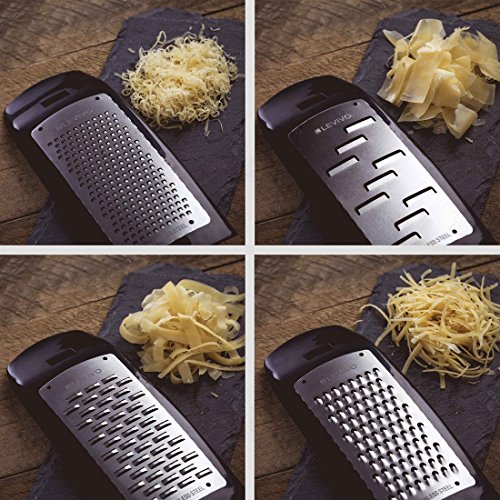 - Set de accesorios para el rallador de queso de Levivo, formado por 4 accesorios fáciles de cambiar para cortar, rallar y cortar en lonchas varios tipos de queso, verduras, frutas y mucho más