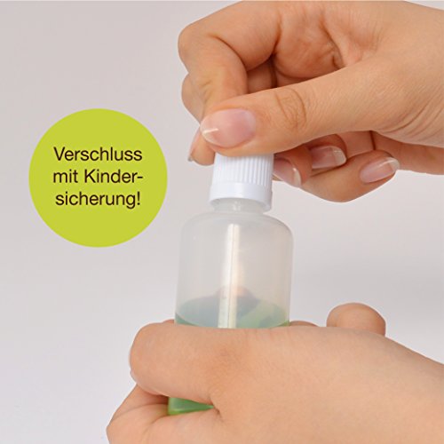 ProfessionalTree Botellas de líquido de 10x50 ml para la dosificación y el Almacenamiento Limpio de líquidos - Tapón de Rosca con Bloqueo de Seguridad para niños