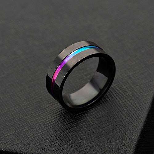 Ouken Anillos de Acero Inoxidable Anillo de Acero de Titanio para Hombres Anillo de Boda Cool Simple Banda 8mm Espejo Acero Anillo tamaño 12 (Negro)