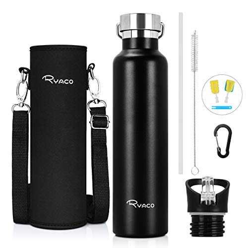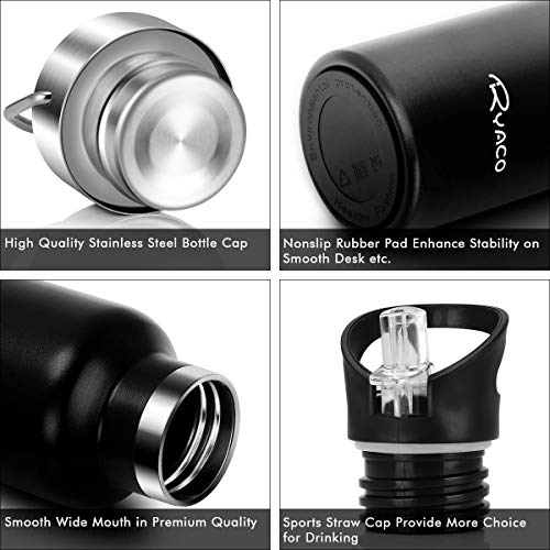 Ryaco Botella de Agua aislada al vacío de Acero Inoxidable, 750ml, diseño de Pared Doble para Mantener Sus Bebidas Caliente y Fría, Sin BPA, Ideal Botella de Agua Deportiva (1000ml, Negro)