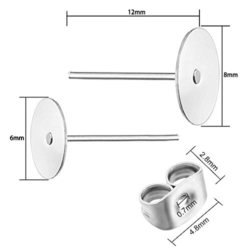 - 【El Paquete Incluye】-- 100 piezas Postes de Pendientes de 6mm 100 piezas Postes de Pendientes de 8mm 200 piezas Tuercas de 4,5 x 6mm. La longitud de la aguja del pendiente es la misma, 12mm. Tanto es suficiente para satisfacer las necesidades de compra de la mayoría de los compradores.