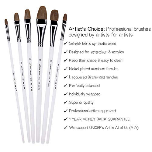 Weasel de Marta Roja Cabello Aceite de Artista Pinceles para Pintura acrílica Gouache y Pintura – Juego de Pinceles de Acuarela Cepillo Claro Mango de plástico 6pcs