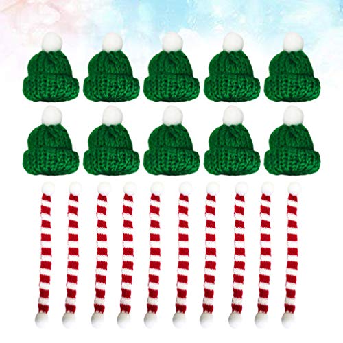 Amosfun - 20 mini bufandas de punto para árbol de Navidad en miniatura, accesorios para el pelo, manualidades, adorno de muñeca, sombrero, joyería 23 * 1CM Green Hat Red Scarf