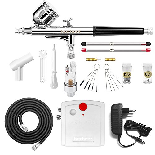 Gocheer mini kit aerografo con compresor profesional accion dual aerografo 0.2 0.3 0.5 mm boquillas para and agujas