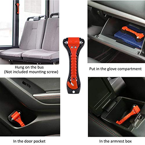 - 【Herramientas de seguridad esenciales】 2 en 1 del martillo de emergencia. Lleva dos cabezales acero resistente que sirve a romper la ventana. Otro extremo, Lleva una cuchilla afilado pensada para cortar el cinturón de seguridad rápido en caso de emergencia para garantizar nuestra seguridad.