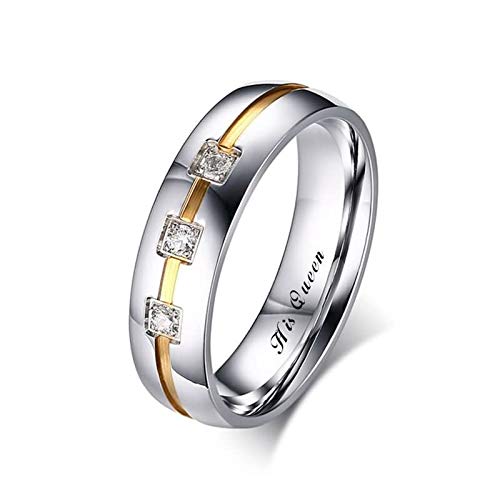 Amody 1 par Anillo de Compromiso de Aniversario de la Alianza de Acero Inoxidable Anillo de Dos Tonos Grabado Her King y His Queen Mujeres tamaño 9,5 Hombres tamaño 25