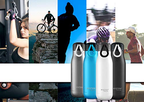 - ✅La Boston Tech Botella de Agua de Acero Inoxidable SP1 las Botellas Boston viene con acero inoxidable del más alto grado disponible. Además la doble pared y sellada al vacio asegura que no tendrá condensación, no sudara ni goteara y la capa externa anti deslizante de Powder Coating asegura un buen agarre.
