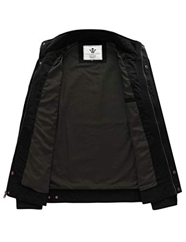 WenVen Cazadora Casual Fina Entretiempo Vaquera para Hombre Negro X-Large