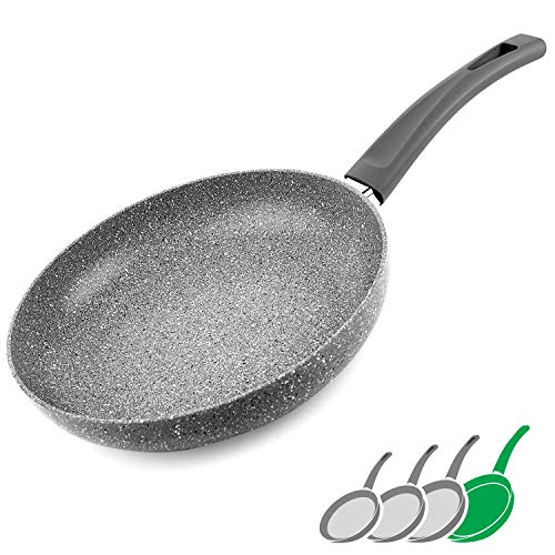 - ACABADO GRANITO DE PIEDRA GRIS FANCY: Con el aspecto elegante de una sartén de piedra de granito natural pero la durabilidad de una sartén de aluminio, nuestra sartén antiadherente de inducción hecha en Italia combina el estilo moderno con la comodidad tradicional.