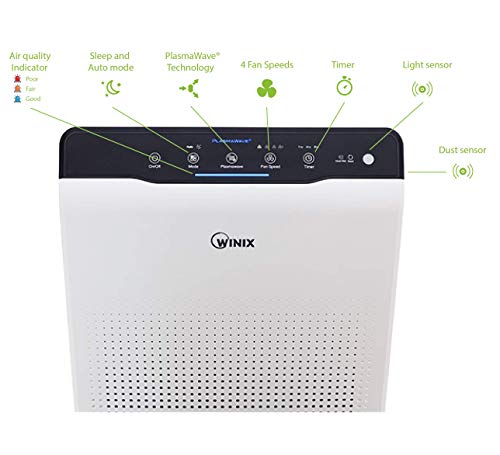 - Purificador de aire de 4 etapas con prefiltro lavable, filtro de carbón, filtro HEPA (99,97%) y tecnología WINIX PlasmaWave.