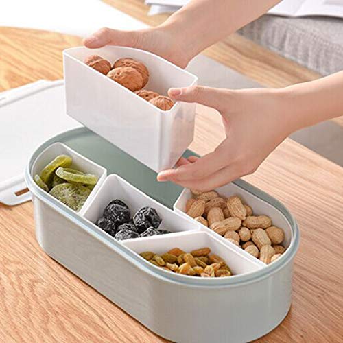 - Bandeja para servir aperitivos prémium: contenedor de nueces Hamkaw hecho de material ABS de grado alimenticio, ecológico, seguro, no tóxico, resistente a las manchas y olores, resistente a los impactos y duradero. Recipiente de doble capa para aperitivos que te permite separar fácilmente diferentes alimentos, evitar que los bocadillos se manchen por olor.
