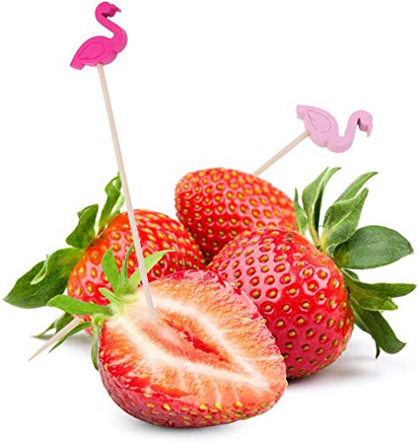 FLZONE Palitos de Cóctel,100 Palillos de Cóctel Brochetas de Bambú Palillo de Frutas para Cócteles Aperitivos Frutas Postres Artículos de Fiesta Brocheta de Frutas-Flamenco