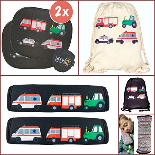 HECKBO Gimnasio Infantil - Impreso por Ambos Lados con 4 brigadas de Bomberos, Tractor, Ambulancia y policía - Gymsack, Mochila, Bolsa de Juegos, Bolsa de Deportes, Bolsa de Zapatos, Bolsa para niños