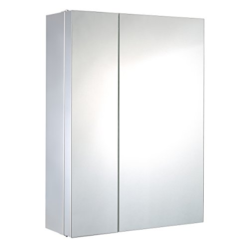 Mari Home Mueble de Baño con Espejo - Estantería con Puertas Espejo - Armario de Pared con Estante Inoxidable - Gabinete para Decoración Moderna de Baño, Ducha, Lavabo - 430 x 160 x 590 mm