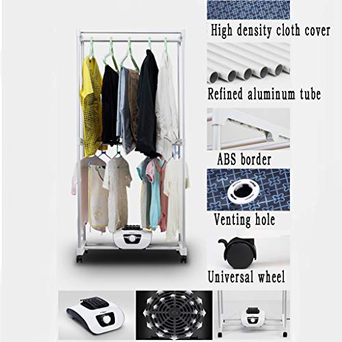 - Secador eléctrico portátil es adecuado para el clima húmero, frío y lluvioso, para ayudarle a secar y desinfectar diversas prendas de vestir y una variedad de textiles. Puede colgar la ropa de la percha para secarla, de modo que su ropa no se arruga, el equivalente del hierro de vapor. Cuando no lo utiliza, puede también utilizado como guardarropa portátil. Y el mainframe del secador, también puede sacar solo como el calentador para que ya no son fríos. Muy práctico y eficaz.