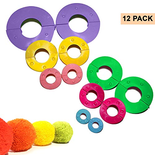 Kit Hacer Pompones 12 Piezas Plástico con Tamaños Variados por Curtzy - Maquinas de Pompones de 9, 7, 5,5, 4,5, 3,5 Y 2,5cm - Pompones para Decoraciones, Guirnaldas, Colgantes y Mas - Reusable