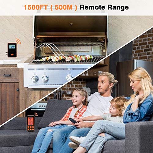 - 【Señal inalámbrica remota de hasta 1500 pies】 Señal inalámbrica de espacio exterior súper más fuerte y capacidad estable de la pared transversal --- Alcance inalámbrico del termómetro remoto para barbacoa de hasta 1500 pies de distancia;
