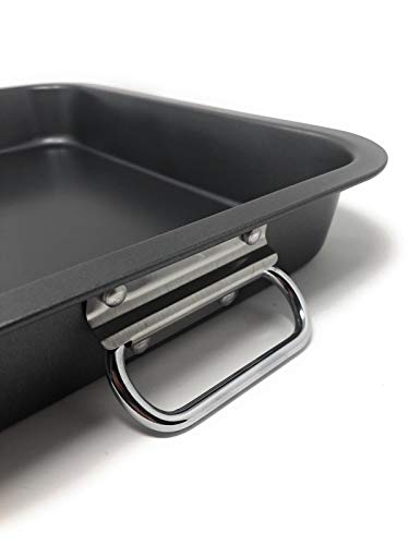 Archmun Bandeja de Horno Profesional Antiadherente de 39 cm de Largo para Lasaña | Molde Profundo para Hornear con Asas de Acero Inoxidable | Incluye Espátula de Silicona en el Paquete