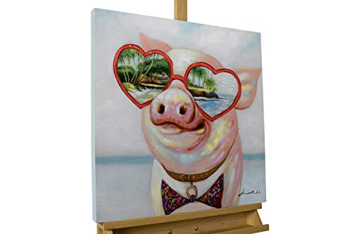 Kunstloft® Cuadro en acrílico 'Puerco en el paraíso' 70x70cm | Original Pintura XXL Pintado a Mano sobre Lienzo | Cerdo Gafas Rosa Azul | Cuadro acrílico de Arte Moderno con Marco