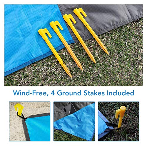 HOPAI Alfombra de Playa Manta de Picnic Impermeable Manta 200x210cm/240x270cm/243x273cm Anti Arena Portátil Manta con 4 Estaca Fijo (200x210cm, Azul)