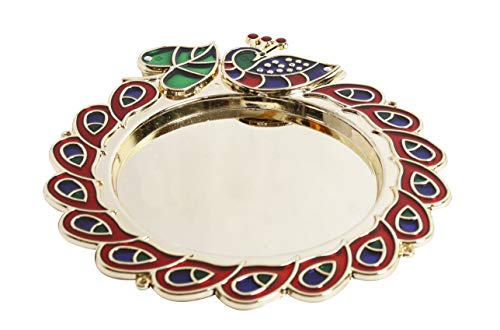 karwa CHAUTH/Karva CHAUTH especial decorativo/Puja Pooja Thali/bandeja con bonito diseño de pavo real para rituales hindú templo, Mandir templo Accessory