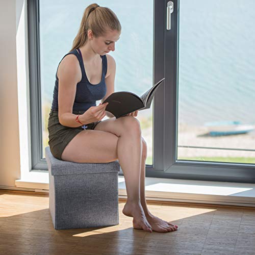 Relaxdays Taburete Plegable, Reposapiés Cuadrado, Tapa extraíble, Lino, 38x38x38 cm, Gris