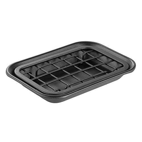 iDesign Portajabón para baño, jabonera pequeña de metal, jabonera de baño con rejilla incorporada para mantener seco el jabón, negro mate