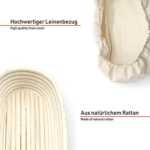Banneton para Pan,Cesta a Prueba de Pan,Cesta para Masa,Oval 25 x 15 x 8 cm,Cesta de Pruebas,Cuenco para Masa,Hecha a Mano de Ratán con 1 Raspador de Masa y 1 Paño de Forro de Lino