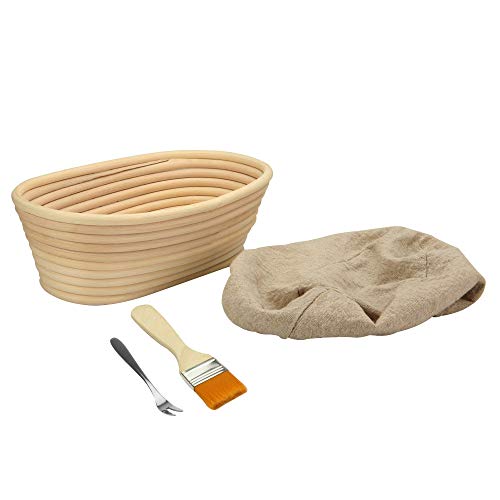 Canasta Panificadora Banneton | Canasta de masa para hornear Brotform | Masa De Ratán Rising Sourdough Set | Cepillo, forro y pan tenedor GRATIS | M&W (Oval)