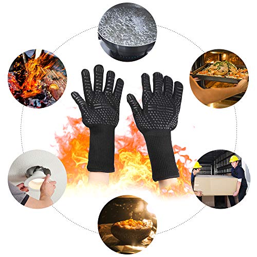 - 【Seguridad y excelente resistencia al calor】 Los guantes para barbacoa poseen la certificación EN407 Nivel 4, soportan las temperaturas más altas de hasta 1472 ° F (800 ° C), evitan quemaduras, son más seguros que otros guantes.