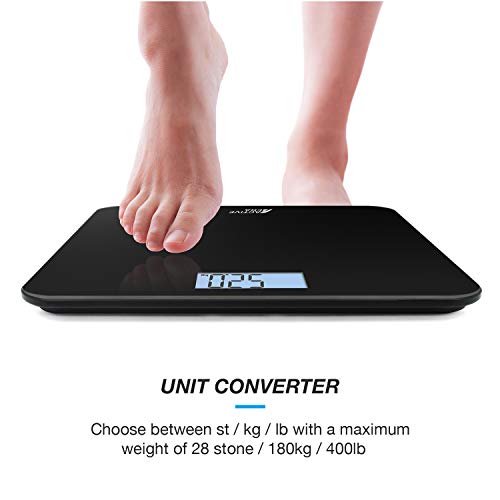 Active EraTM Báscula de Baño Digital Ultrafina con Sensores de Alta Precisión (stones/kgs/libras) - Negro