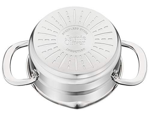 Tefal E494S7 Jamie Oliver - Batería de cocina (7 piezas, incluye 3 tapas de cristal, asas remachadas, compatible con todo tipo de fuegos, acero inoxidable)
