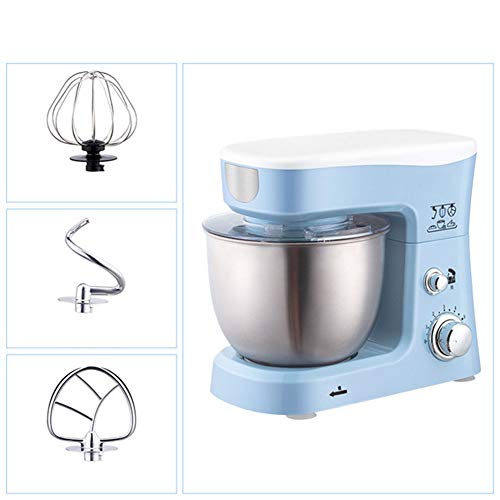 Batidora Amasadora Repostería, 3,5 L Del Recipiente De Mezcla Y El Protector De Salpicaduras Con 6 Velocidades Incluye Batidor, Gancho Amasador Y Globo Bata Por Tortas, Batidos, Pan, Postres 600W,Azul