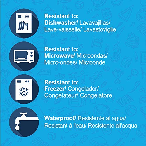 - Etiquetas adhesivas impermeables, resistentes a los arañazos y resistentes al lavavajillas, nevera, microondas.