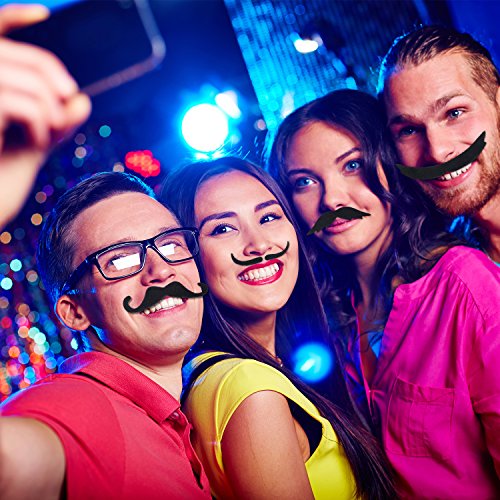 - Divertidos bigotes falsos: 72 paquetes de bigote falso colorido, y todos están hechos de fibra para un aspecto más realista