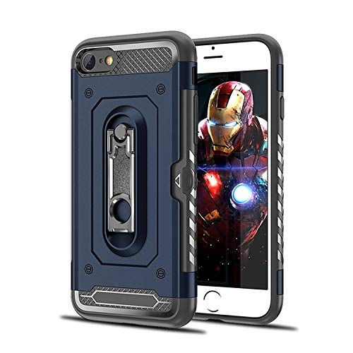 QINGMU Caso a Prueba de choques de PC + TPU Caso Delgado del Estilo del Caso inconsútil Elegante for el iPhone 7/8, con el Tenedor (Color : Azul Marino)