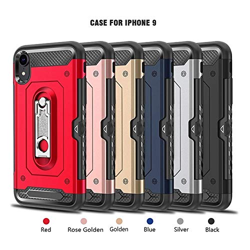Diseño ligero de hebilla de anillo Diseño a prueba de choques del caso de la cobertura completa para el iPhone XR, con el tenedor giratorio magnético del anillo ( Color : Azul Marino )