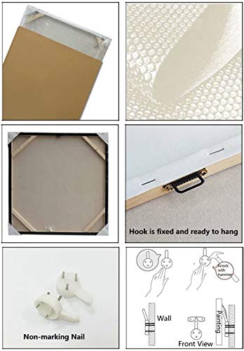 - Fácil de colgar: estirado y enmarcado, listo para colgar. Un fuerte gancho ya está fijo en cada marco interior de madera para colgar fácilmente fuera de la caja.