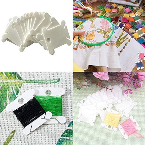 200PCS Bobinas de Hilo Punto de Cruz,Osuter Plastico Bobinas con 2PCS Bobinadora para Arte Bordado Tejeduría Manualidades