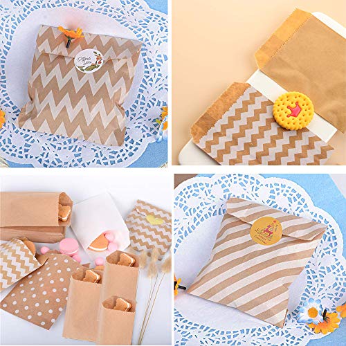 100pcs Bolsas Papel Kraft,Bolsas de Papel para Regalos Dulces de Galletas, yPegatinas Paquetes Decortivas de Regalo para Bodas de Cumpleaños de Navidad Bautismo, Golosinas, Nueces, Chocolates