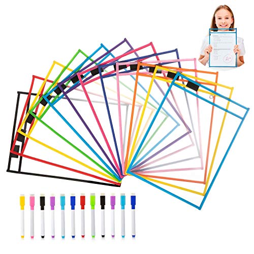 - [Múltiples usos] : Los bolsillos reutilizables de borrado en seco hacen que sea fácil guardar tus documentos valiosos y puedes hacer notas en ellos sin dañar el papel. Perfecto para aulas, deberes, tiendas, documentos de archivos, etc. especialmente.