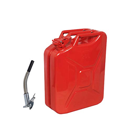 Lata de 20 litros de color rojo con boquilla roja, para combustible, gasolina, diésel, etc.