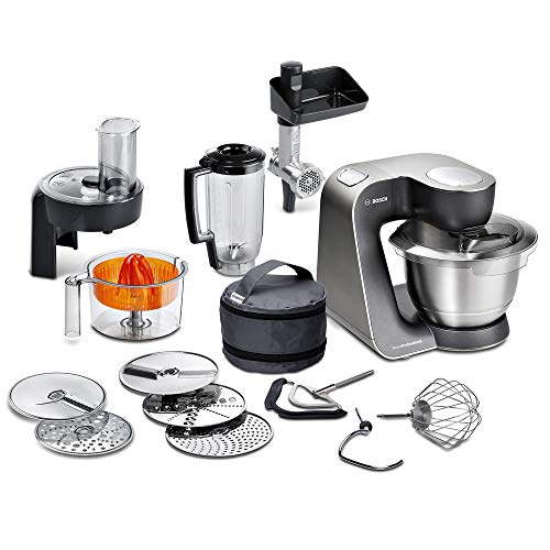 Bosch MC812M844 MultiTalent 8 Robot de cocina con accesorios, 1.250 W, 3.9 litros de capacidad, color negro y acero inoxidable