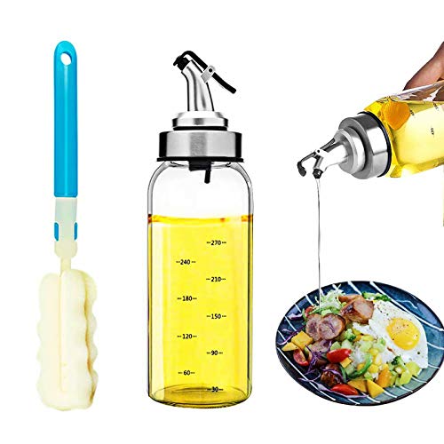 Dispensador De Aceite De Oliva y Vinagre con Boquillas Antigoteo - Dispensador De La Botella del Aceite y del Vinagre [Marcador de líneas con una escala] 300ML,Cepillo de regalo