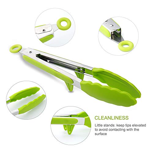- Clips de seguridad: Pinzas para alimentos con clips de bloqueo, la tecnología de anillo de clip evita que las pinzas se abran y cierren accidentalmente. Esto permite un mejor control durante el uso. Después del uso, puede bloquear y colgar la cocina. Las pinzas de parrilla tienen dos trípodes sobresalientes para mantener las pinzas de comida lejos de las superficies de trabajo y mantenerlas siempre limpias