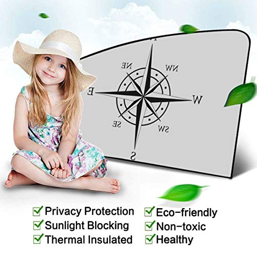 4 Unids Parabrisas de coche Sombrilla Chica Una brújula antigua Rosa Parabrisas de coche Sombrilla para mujer Cortina magnética Luz solar brillante, calor y protección contra rayos Uv para su hijo y
