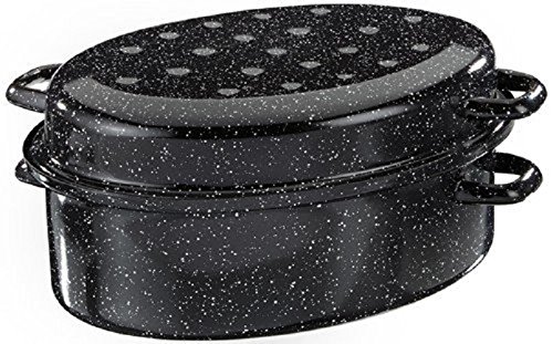 - Contenido de envío: 1 x tostador de esmalte con tapa aproximativo 42 cm, moteado negro/blanco